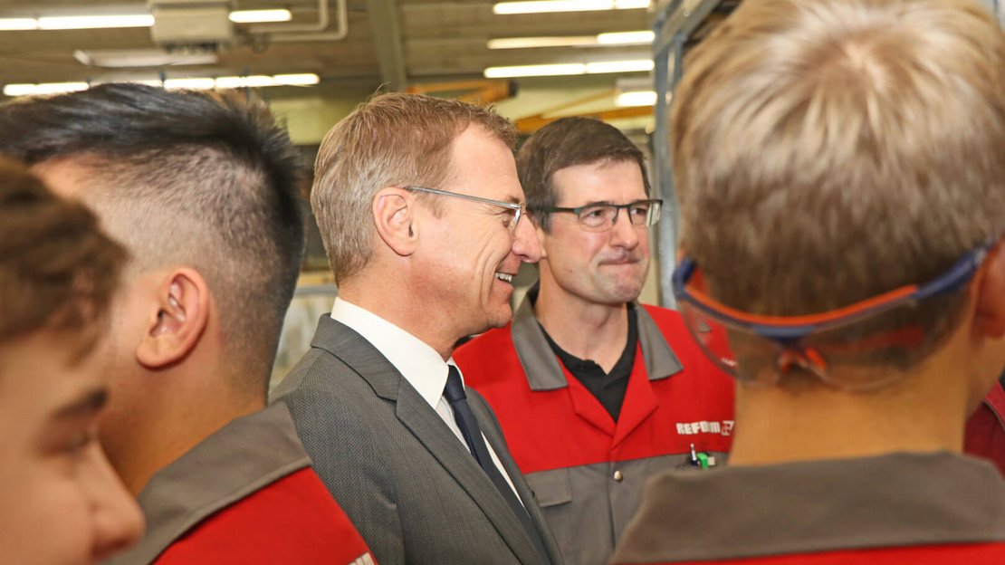 The ground-breaking ceremony was followed by a short tour of the production and assembly facilities, where numerous hands were shaken and discussions were held with the employees. At the REFORM training workshop group photos and interviews with the apprentices of the first year were announced. After all, Mayor Dr. Rabl praised the importance of REFORM's apprentice training in the run-up to the event. For years, REFORM has relied on recruiting specialists, specialists and managers from its own ranks. So it is no wonder that the average length of service at REFORM is more than 16 years, whereupon Doris Hummer impressed the comparison to the average number from the economy in Upper Austria with only 2 years of service brought into discussion.