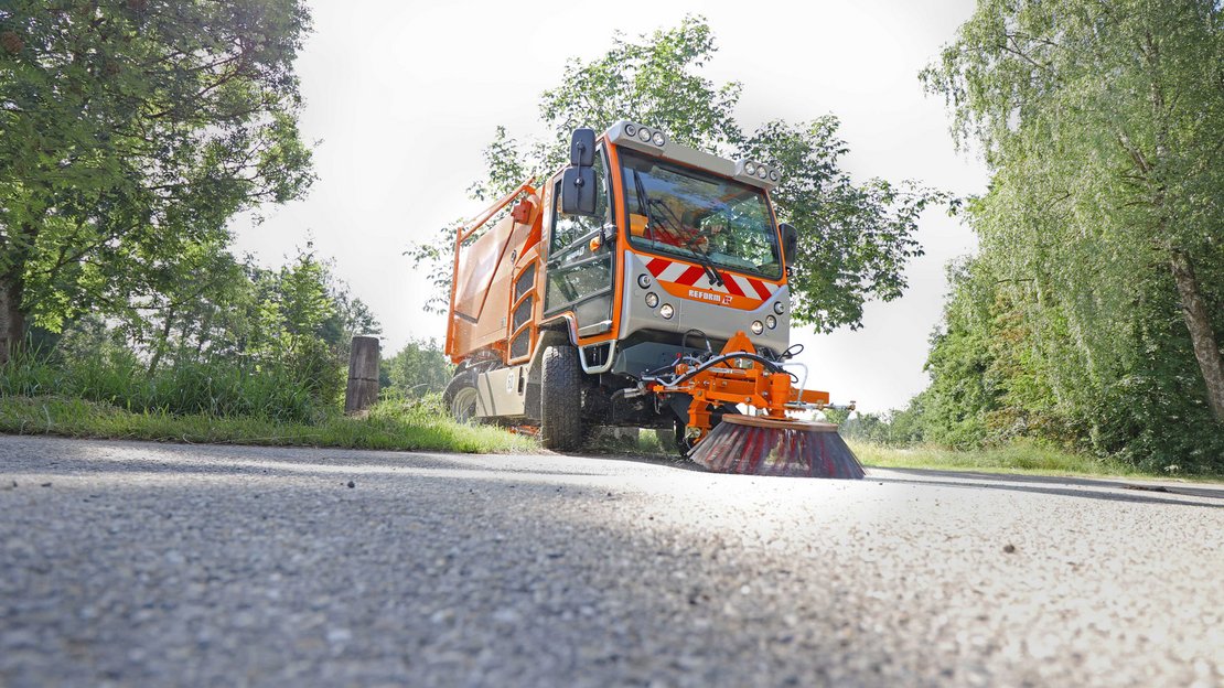 The sweeping solutions for the Boki narrow-gauge vehicle convince with their unique manoeuvrability and minimal outside widths. Equipped with the sweeper attachment including rear suction, the cleaning of otherwise challenging areas such as narrow alleys, small underpasses or cycle paths becomes child's play. A 1.8 m³ dirt collection container and 350 litre water tank enable low-dust work without constant emptying interruptions.