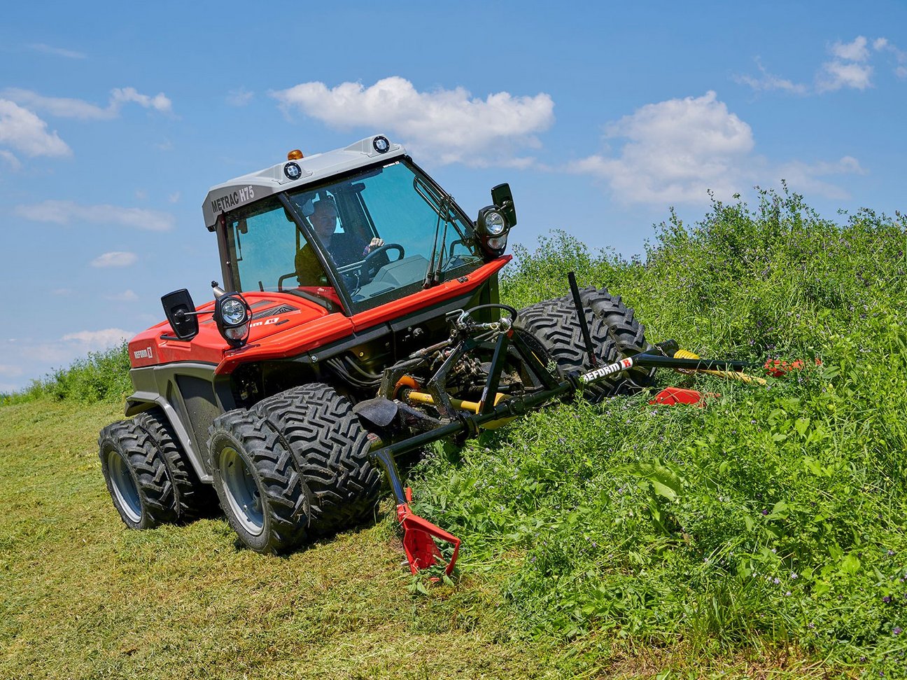 The exceptionally lightweight twin blade mowers are particularly suitable for use with the smaller Metrac models. With a dead weight of 125 kg or more, they are the lightweight alternative to rotary disc mowers. The twin blades ensure clean and gentle cutting of forage.