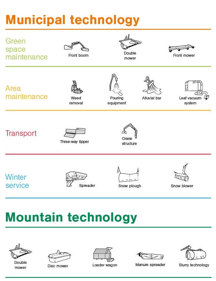 Municipal Technology: In green space maintenance, it impresses with a front boom, double-blade mower, or front mower. For area care, it excels with weed control, irrigation systems, leveling bars, or leaf suction systems. In transportation, the Muli T15 V stands out with a three-way tipper, crane setup, or hook lift system. For winter services, it is indispensable with a spreader, snow plow, or snow blower.