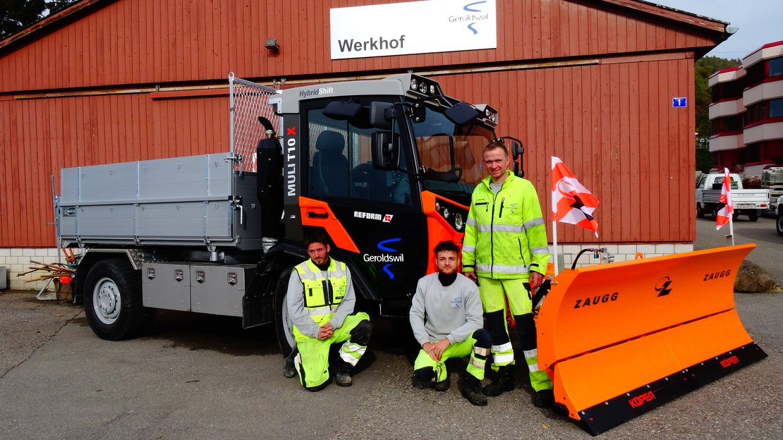 C’est avec beaucoup d’enthousiasme que les employés de la voirie de Geroldswil ont pris possession de leur nouveau véhicule communal unique en son genre, le REFORM Muli T10X HybridShift qui arrive juste à point pour les travaux de la saison d’hiver. Ils connaissent bien la qualité du matériel de la maison REFORM et savent qu’ils pourront reporter leur entière confiance sur leur nouveau véhicule.
