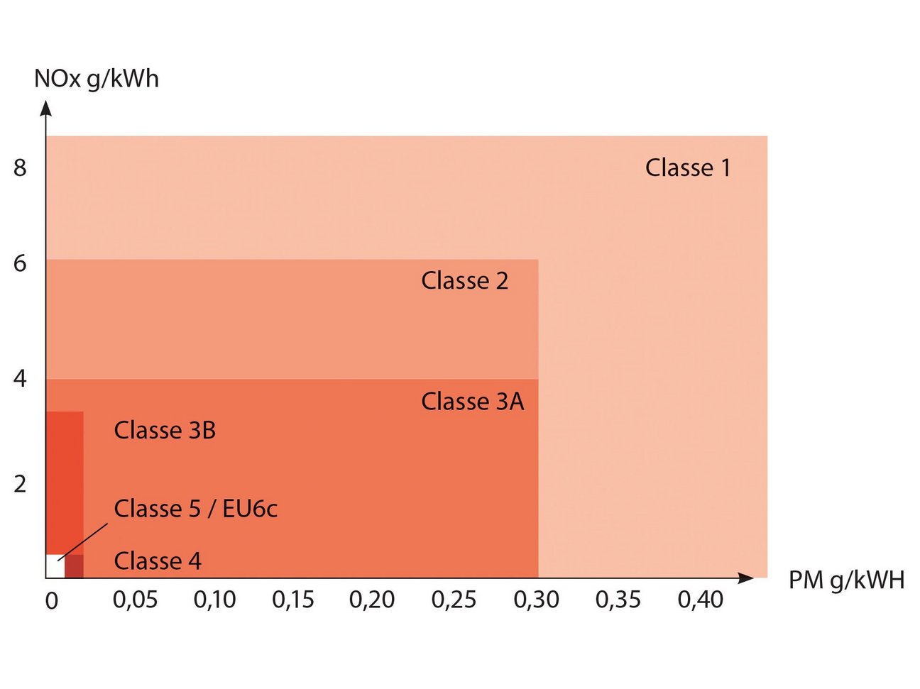 Avec le dispositif SCR (selective catalytic reduction) et l’additif AdBlue supplémentaires ainsi que la surveillance des valeurs de NOX et de particules fines pendant la marche, ces moteurs satisfont donc aux exigences extrêmement strictes de la norme sur les gaz d'échappement EU6c. La régénération automatique du filtre à particules et l’équipement SCR sans entretien permettent également de réduire la maintenance du traitement ultérieur des gaz d'échappement à un minimum.