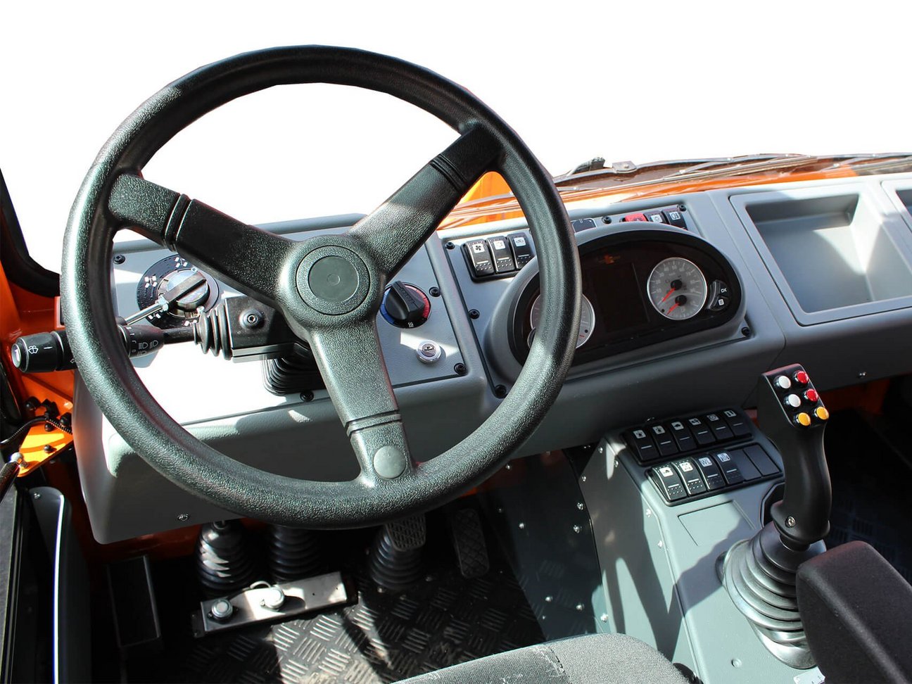 Le confort du poste de travail est décisif pour un travail sans fatigue. En particulier dans les situations critiques, dans diverses interventions ou en cas de changement fréquent de conducteur, un grand confort d’utilisation est absolument crucial. Le conducteur doit pouvoir trouver les principales fonctions de manière intuitive. Des matériaux de grande qualité, des éléments de commande et des instruments clairement ordonnés renforcent encore l’impression de qualité qu’inspirent les cabines.