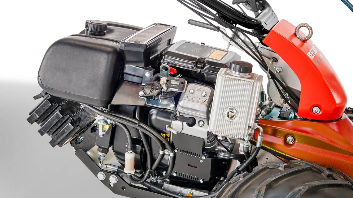 Selon l’usage et le modèle, les moteurs sont équipés pour le travail en montagne. Afin de permettre un travail optimal dans ces conditions très exigeantes, tous les moteurs sont pourvus d’une lubrification par barbotage qui garantit un graissage du moteur toujours parfait. Pour que le moteur dispose toujours d’assez de carburant en toute situation, tous les modèles de Motech sont dotés en série d’une pompe à essence.