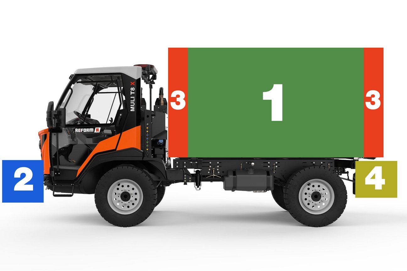 Les outils portés à attelage rapide font du Muli une machine de travail compacte et polyvalente. 4 zones de montage à part entière (châssis principal, relevage avant, cadre de montage, relevage arrière/crochet d’attelage) garantissent une multifonctionnalité complète pour les interventions les plus variées. La suspension abaissable et le système de coupleur rapide avec centrage automatisé de la prise de force associés à l’autochargeuse REFORM permettent de changer très rapidement d’outil de travail.