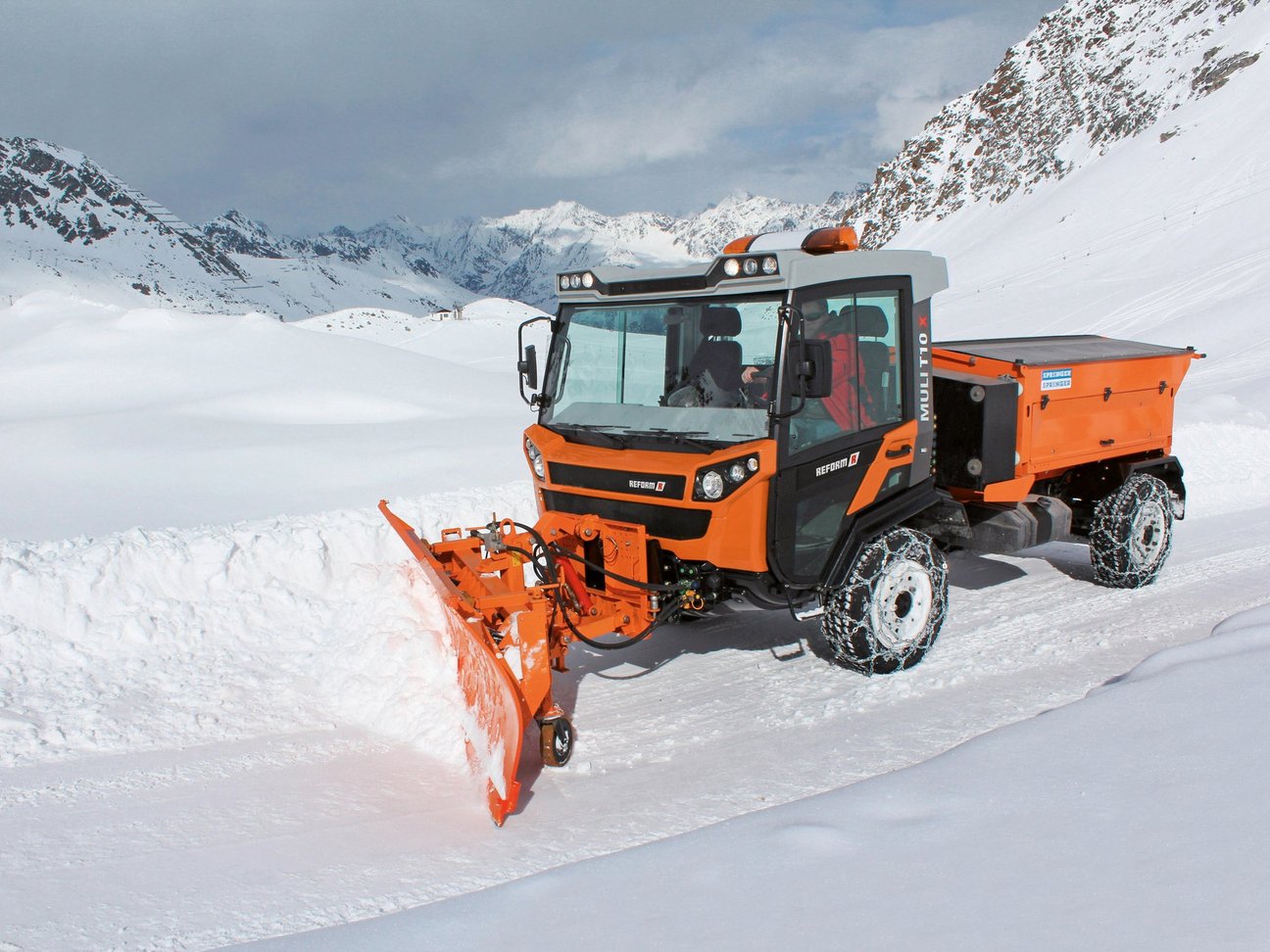 Avec une large choix de lames à neige, de possibilités de montage d’épandeurs de sel, de saumure ou de gravillons ainsi que de fraises à neige puissantes, le Muli est un partenaire de confiance pour le service hivernal. Sa transmission intégrale et sa direction intégrale associées à de puissants moteurs permettent de l’utiliser aussi bien en ville que sur des cols ou en montagne. La longévité, l’intuitivité et la flexibilité sont ici les maîtres mots.