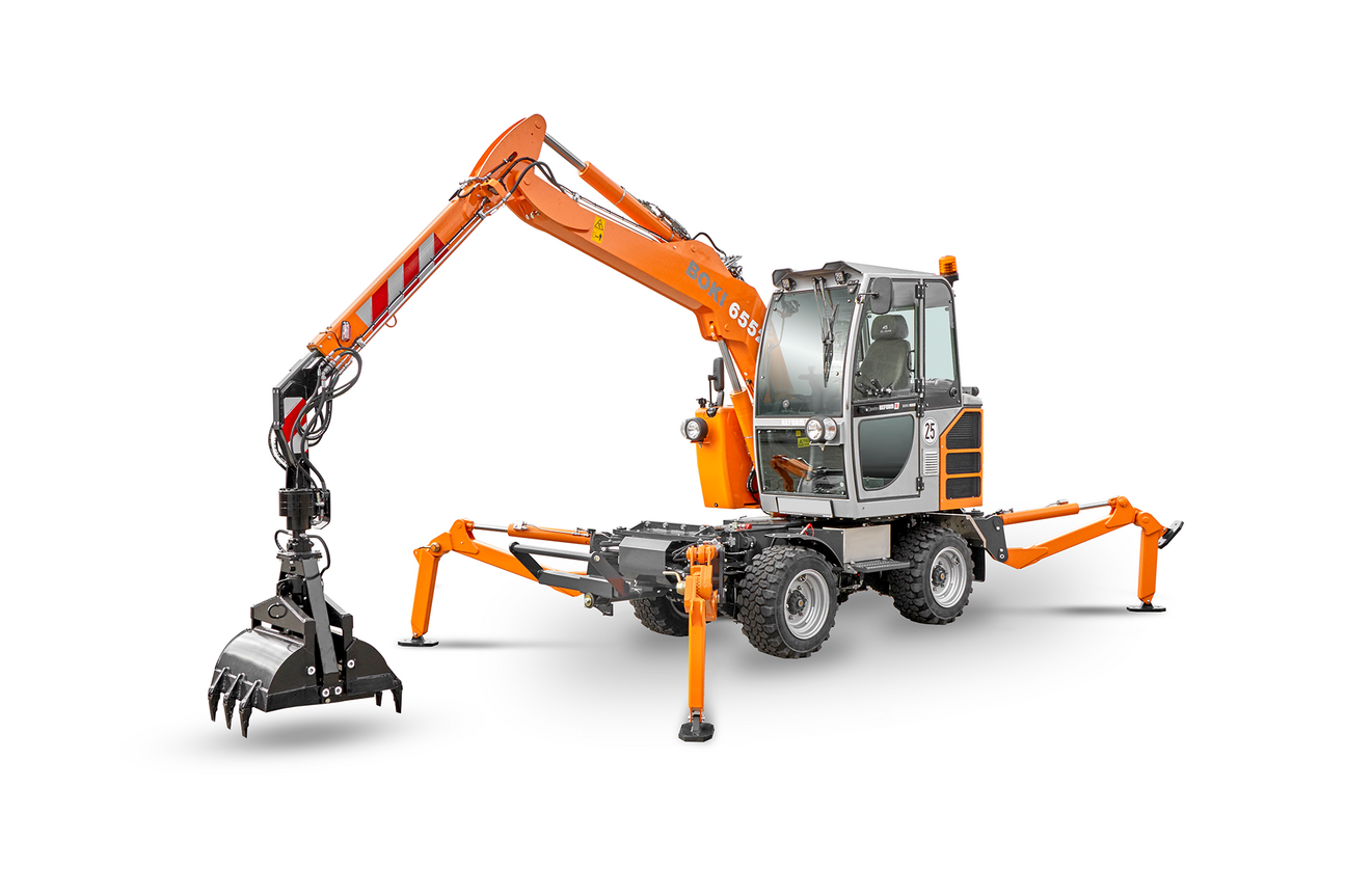 Il Boki 6552 è l'escavatore mobile REFORM più potente. Con un efficiente motore diesel a 4 cilindri da 98 CV, il Boki 6552 è un vero pacchetto di forza. Dotato di una potente trasmissione idrostatica, che consente una velocità massima fino a 40 km/h, permette un rapido spostamento da un luogo all'altro. Anche per le prestazioni lavorative, il Boki 6552 definisce nuovi standard in quanto con il braccio telescopico permette di raggiungere una portata di 6.500 mm o persino di 7.000 mm. Nella versione standard è possibile una portata di 5.400 mm. Dotato di un efficiente impianto idraulico Loadsensing, il Boki 6552 raggiunge un'elevata potenza di scavo.