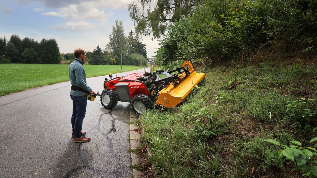 Aber nicht nur am Hang spielt der Metron P48 RC seine Stärken aus. Dank des Standard-Hubwerks Kat.I und der mechanischen Hybrid-Zapfwelle lassen sich alle gängigen Anbaugeräte betreiben. So können verschiedensten Anbaugeräte, wie Schlegelmulcher, Sichelmäher, Schneefräsen, Schneepflug, Kehrbesen und vieles mehr einfach angebaut werden. Mit seinen kompakten Abmessungen und dem Eigengewicht von ca. 1.000 kg, lässt er sich leicht transportieren und kommt auch in engen Verhältnissen sehr gut zu recht.