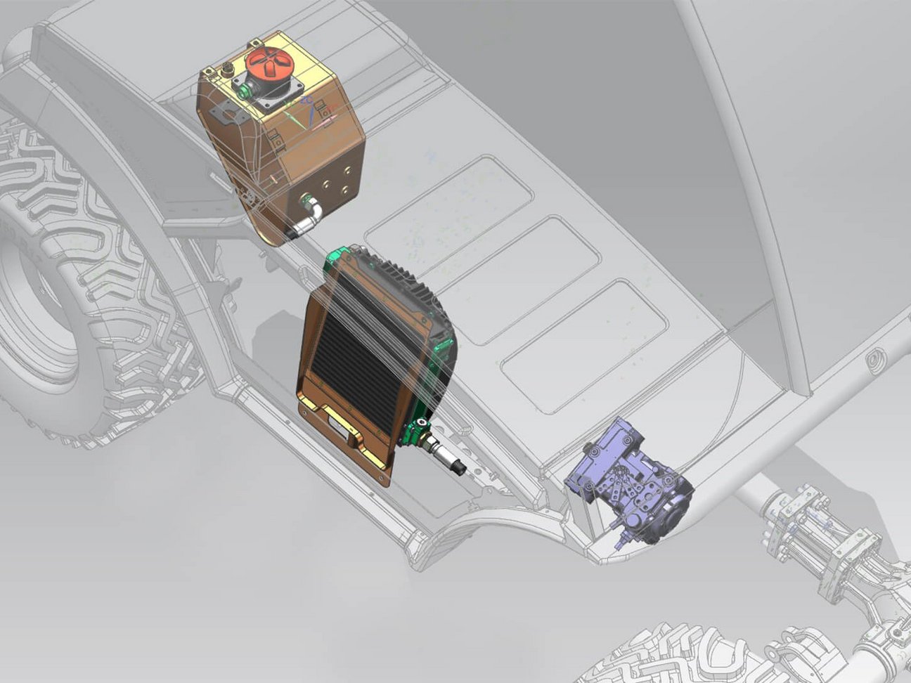 Die Kühlung des Fahrantriebes erfolgt über einen elektrisch angetriebenen Ölkühler. Dieser Kühler schaltet sich bei Bedarf automatisch zu.