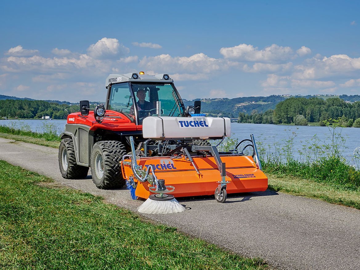 Ausgestattet mit einer rotierenden Kehrbürste mit einer Arbeitsbreite von bis zu 2,2 m stellen auch schmutzige Flächen kein Problem dar. Die Kehrbürste ist entweder mit oder auch ohne Sammelbehälter einsetzbar. Rotierende, seitliche Besen erhöhen die Arbeitsbreite und reinigen auch engste, verwinkelte Stellen. Angetrieben werden die Kehrbürsten mechanisch oder hydraulisch. Zur Staubvermeidung ist eine Sprüheinrichtung, welche über einen Wassertank versorgt wird, am Heck montierbar.