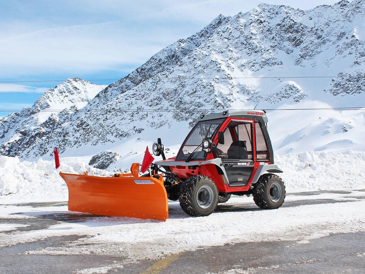 Die hohe Wendigkeit und die kompakte Bauweise machen den Metrac zu einem praktischen Helfer im Winterdienst. Egal ob mit Schneepflug, Schneefräse oder auch einer Kehrbürste können Schnee und Eis einfach und schnell beseitigt werden.