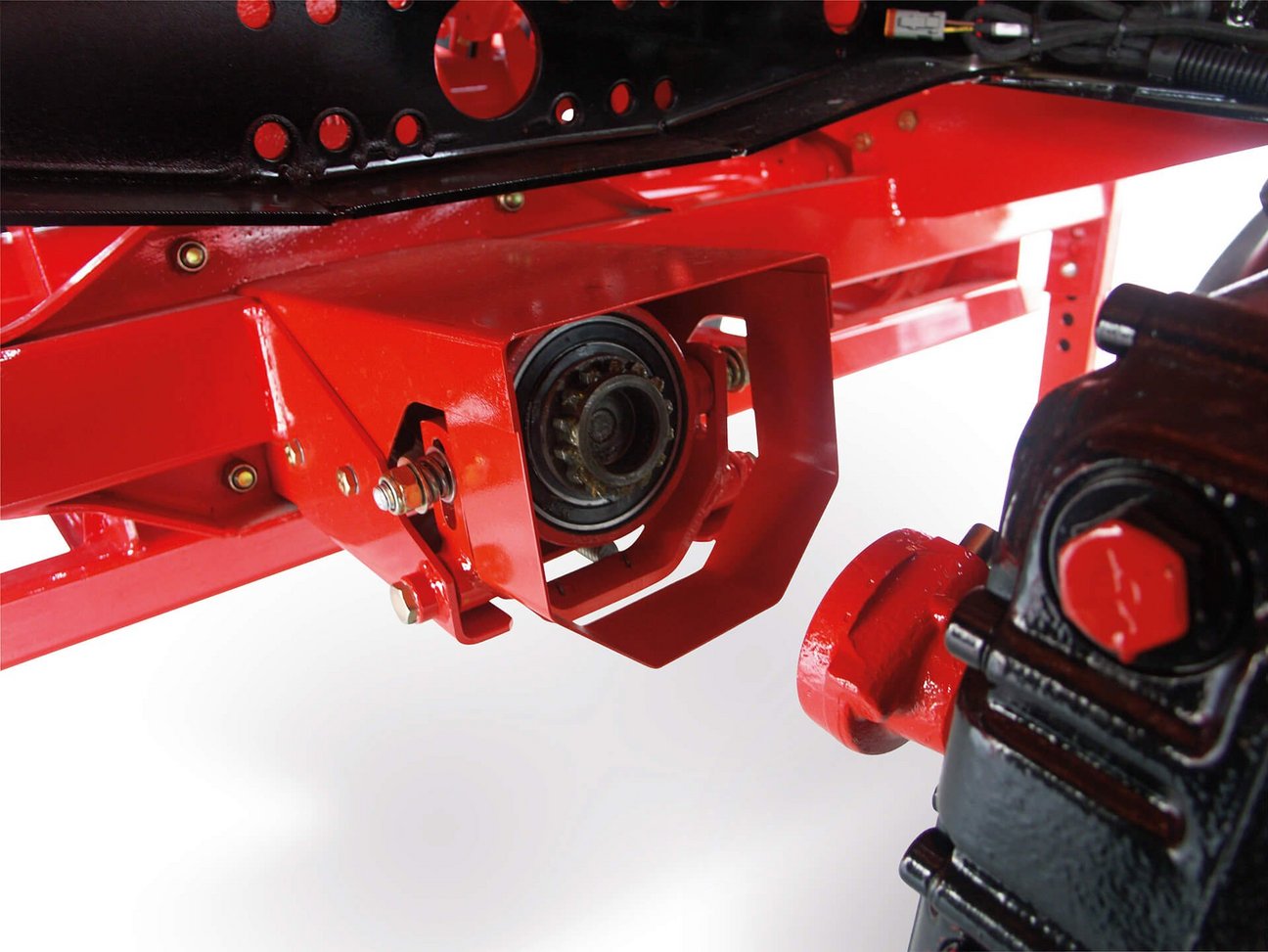 Mit Hilfe des Reform Schnellkuppelsystems können Aufsattelgeräte wie der Ladewagen, der Miststreuer oder der Dreiseitenkipper einfach und schnell angebaut werden. Die Geräte werden dabei in den Fanghaken an der Hinterachse des Muli aufgenommen. Ein besonderes Highlight ist, dass zum Beispiel beim Ladewagen auch der Antrieb ohne Gelenkwelle direkt an den Zapfwellenstummel angekuppelt wird. Neben der enormen Zeitersparnis beim Ankuppeln von Aufbaugeräten spricht auch der Komfort und die Sicherheit für dieses System.