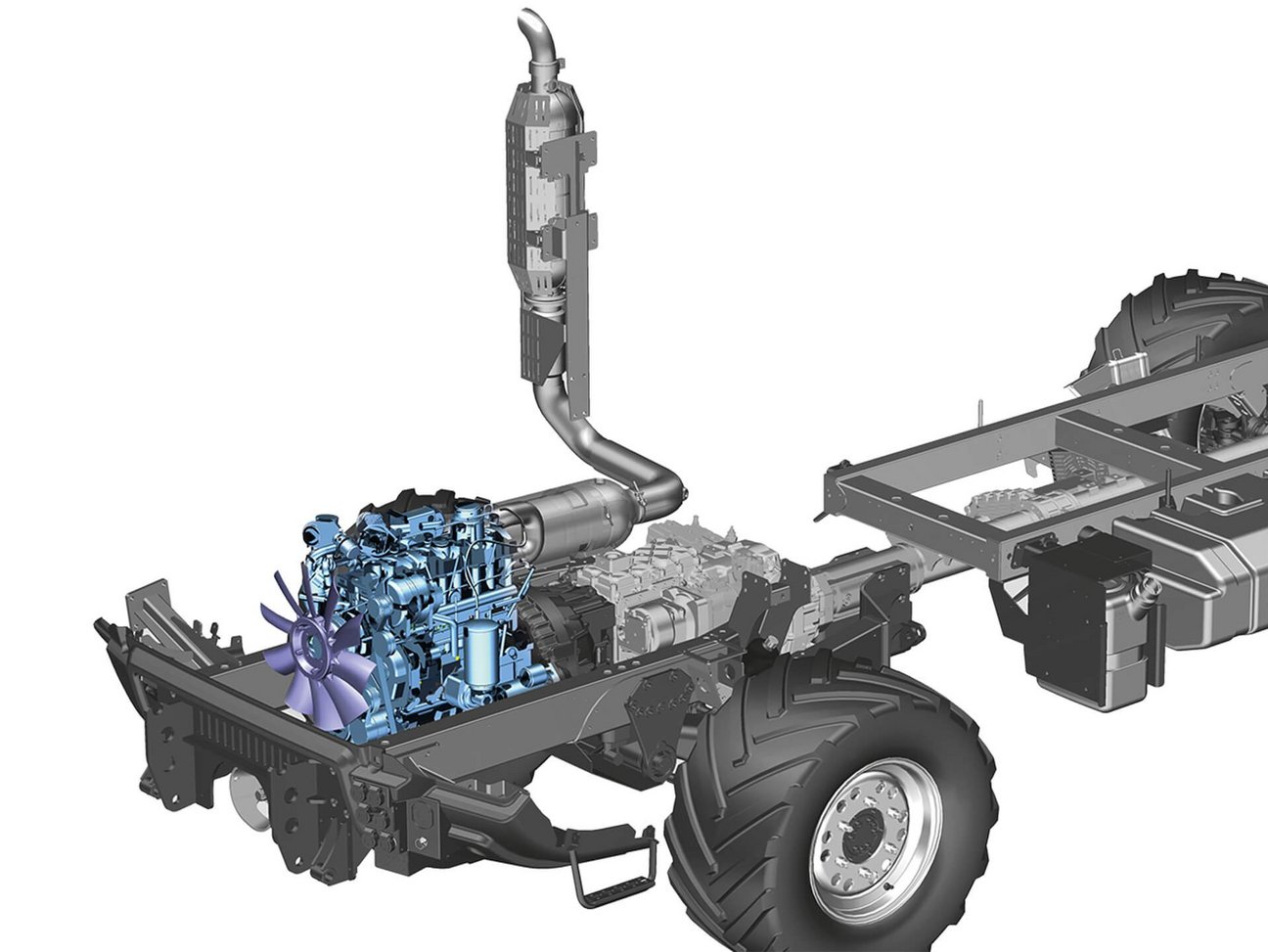 Bei den Leistungsklassen über 75 PS wird neben dem Treibstofftank ein Ad Blue-Tank mit 15 Litern Fassungsvermögen verbaut.