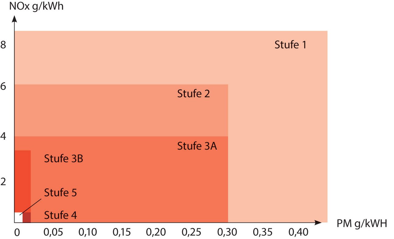 Die Verschärfung der Abgasstufen dient der Reduktion von verschiedenen Schadstoffen in den Abgasen von Dieselmotoren.