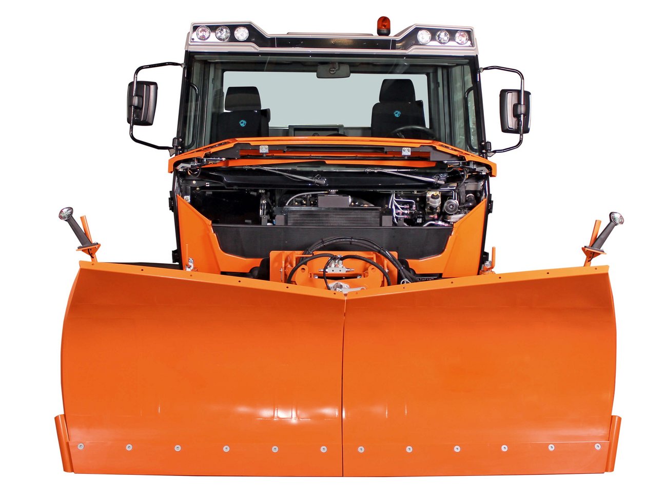 Die serienmäßige Kippkabine in der Oberklasse ermöglicht es für Wartungs- und Reparaturarbeiten rasch in den Motorraum zu gelangen. Die werkzeuglos und hydraulisch zur Seite kippbare Kabine lässt sich in kürzester Zeit anheben. Durch das seitliche Kippen müssen Frontanbaugeräte wie ein Schneepflug oder Mähwerk nicht demontiert werden.