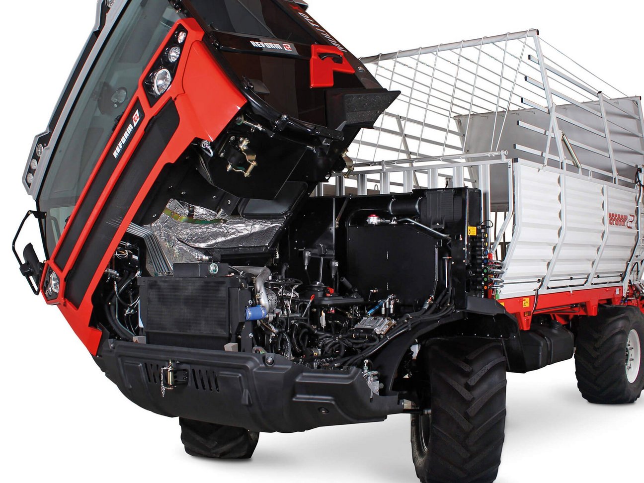 Beim REFORM Muli werden Servicefreundlichkeit und optimale Zugänglichkeit der Komponenten großgeschrieben. So sind sämtliche Service- und Wartungsklappen einfach zu öffnen. In der Oberklasse gibt es unter anderem eine Kippkabine, welche einen einfachen Zugang zum Motorraum, trotz montierter Anbaugeräte, zulässt.